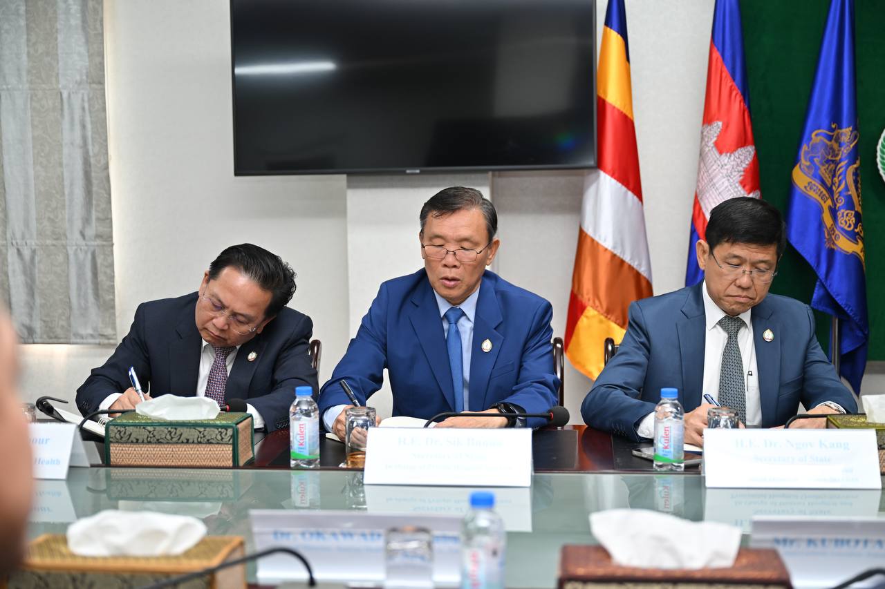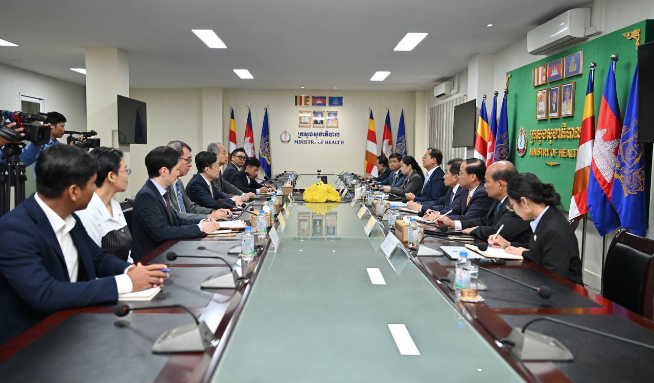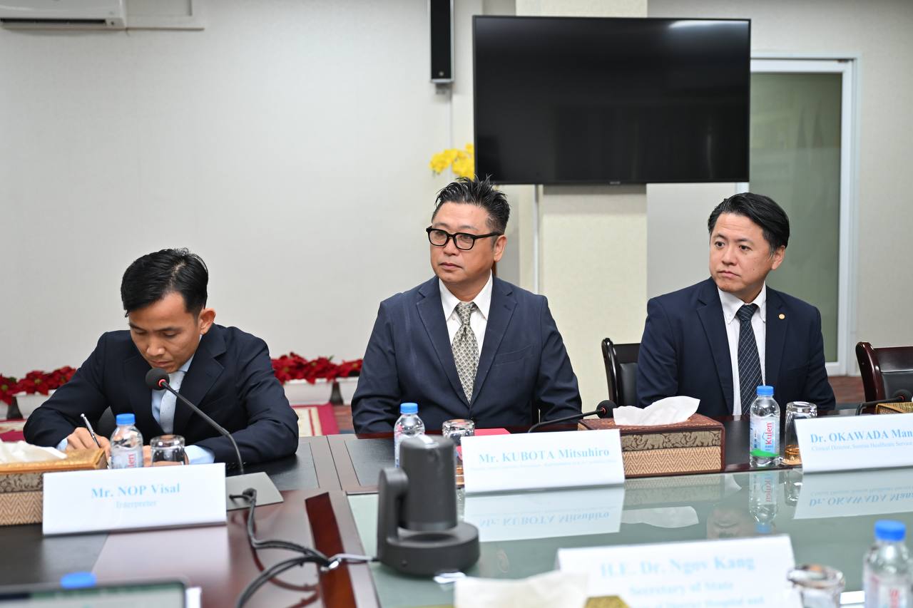 (ភ្នំពេញ)៖ លោកសាស្ត្រាចារ្យ ឈាង រ៉ា រដ្ឋមន្ត្រីក្រសួងសុខាភិបាល នៅថ្ងៃទី២ ខែមេសា ឆ្នាំ២០២៦ បានទទួលជួបគណៈប្រតិភូសមាគមជប៉ុន-កម្ពុជា ដឹកនាំដោយ ឯកឧត្តម Fumiaki Takahashi អតីតឯកអគ្គរដ្ឋទូតជប៉ុនប្រចាំកម្ពុជា និងជាប្រធានសមាគមជប៉ុន-កម្ពុជា (Japan-Cambodia Association (JCA)។