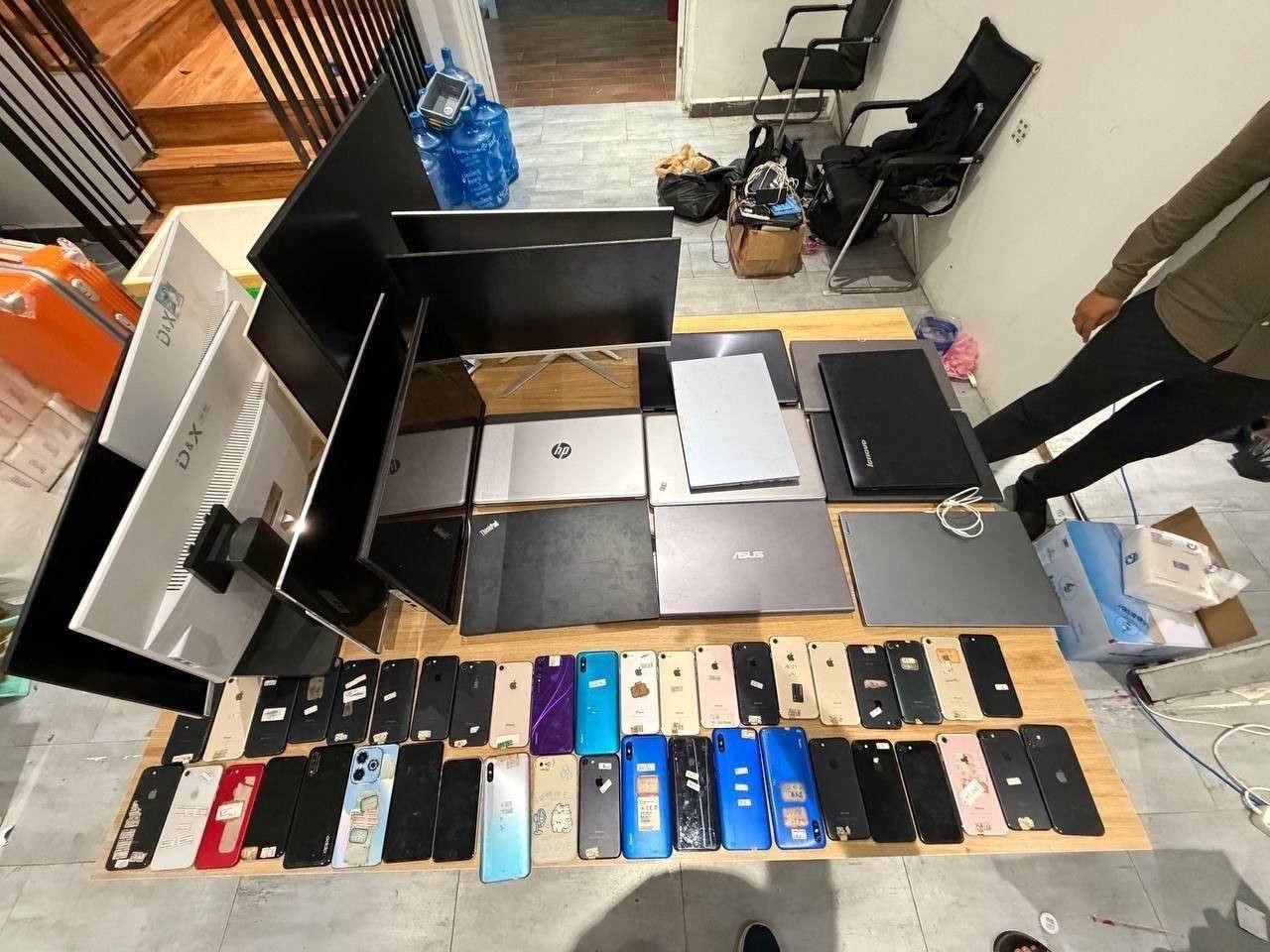 ក្រៅពីជនពាក់ព័ន្ធខាងលើ សមត្ថកិច្ចបានរកឃើញឧបករណ៍-សម្ភារៈ រកឃើញមាន កំព្យូទ័រលើតុ ALL IN ONE ៨៩គ្រឿង កំព្យូទ័រយួរដៃ ៥៧គ្រឿង iPad ៧៣គ្រឿង MONITOR ១គ្រឿង ទូរស័ព្ទដៃចម្រុះម៉ាក ១,៤២១គ្រឿង ម៉ាស៊ីន PRINTER ១គ្រឿង និងទូដែក៧។ នេះបើតាមរបាយការណ៍របស់នាយកដ្ឋានប្រឆាំងបទល្មើសល្បែងពាណិជ្ជកម្ម នៃអគ្គស្នងការដ្ឋាននគរបាលជាតិ។