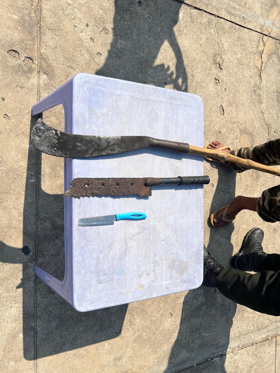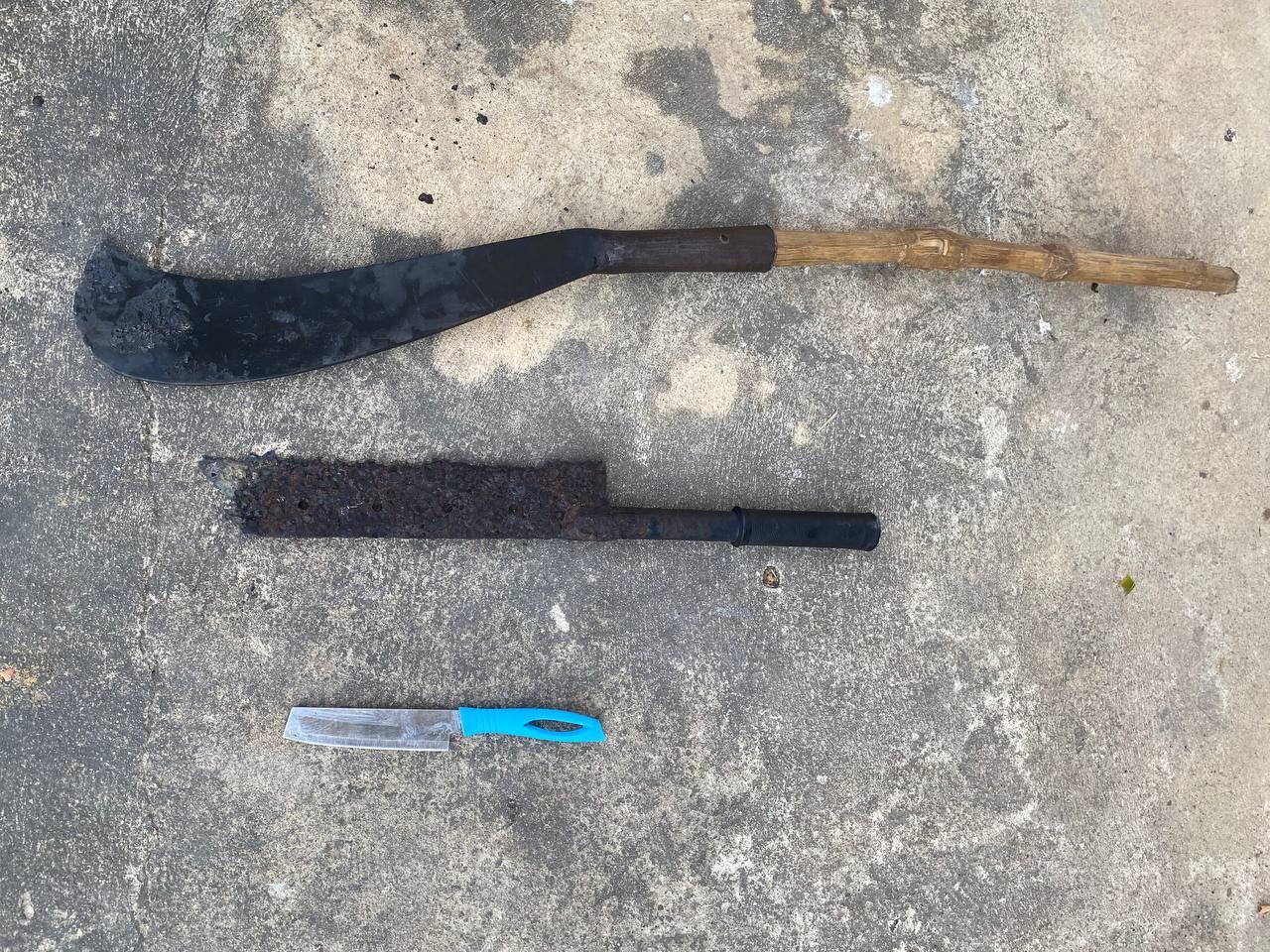 វត្ថុតាងដកហូតរួមមាន៖ កាំបិតផ្គាក់ ចំនួន០១ដើម, កាំបិតដងដែក ចំនួន០១ដើម និងកូនកាំបិតចំនួន០១ដើម។
