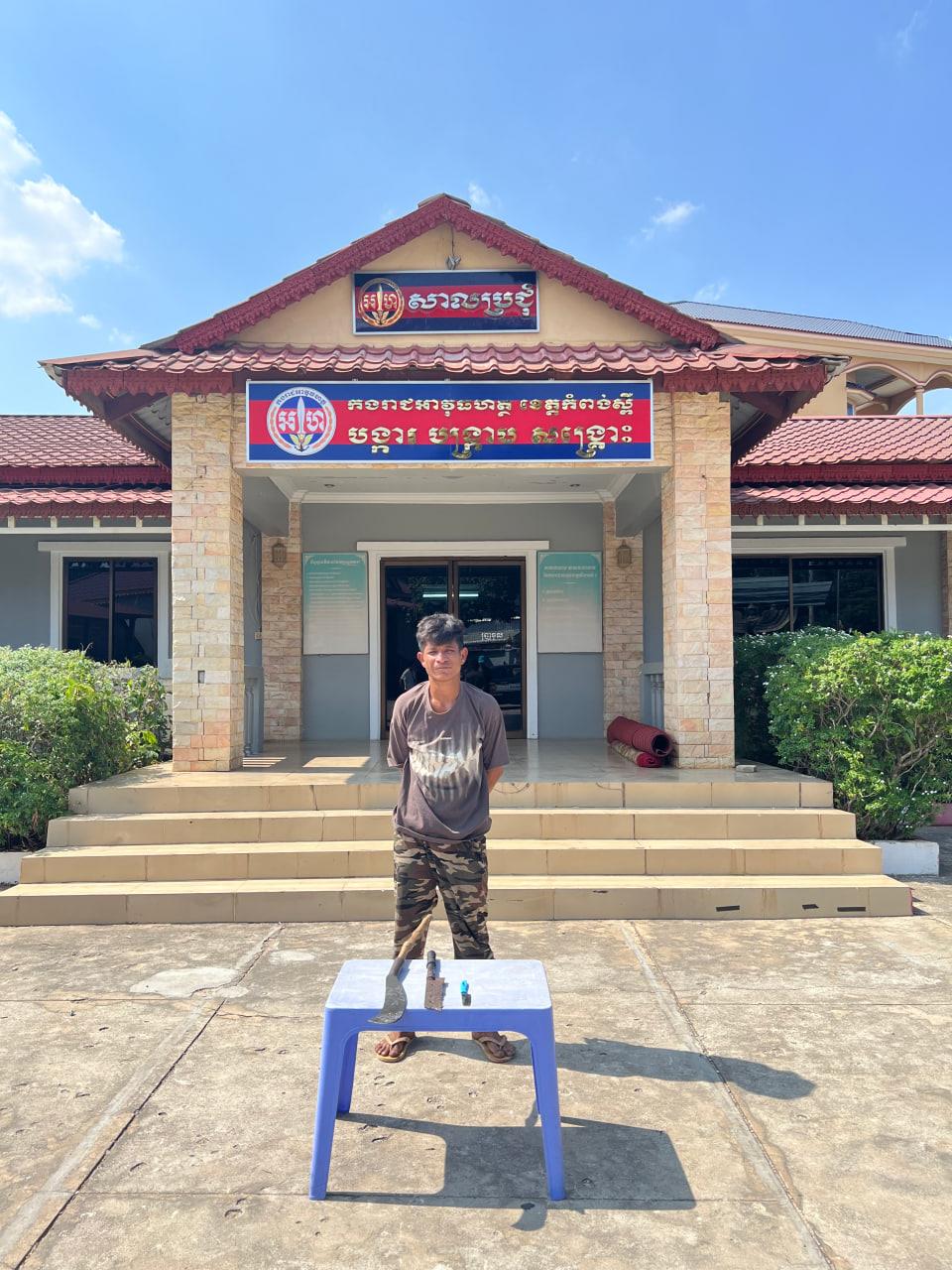 ហេតុការណ៍នេះបានកើតឡើងនៅវេលាម៉ោង ១២៖១៥នាទីថ្ងៃទី៦ ខែមេសា ឆ្នាំ២០២៦ នៅភូមិឧញ្ញាទេព ឃុំត្រពាំងគង ស្រុកសំរោងទង ខេត្តកំពង់ស្ពឺ។ ជាលទ្ធផល អាវុធហត្ថបានឃាត់ខ្លួនជនសង្ស័យឈ្មោះ ផូ ផារត់ អាយុ២៩ឆ្នាំ រស់នៅទីកន្លែងកើតហេតុ។