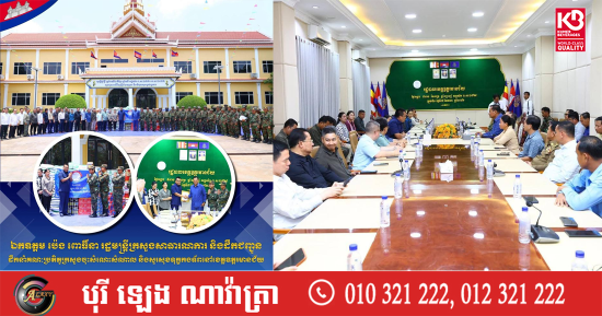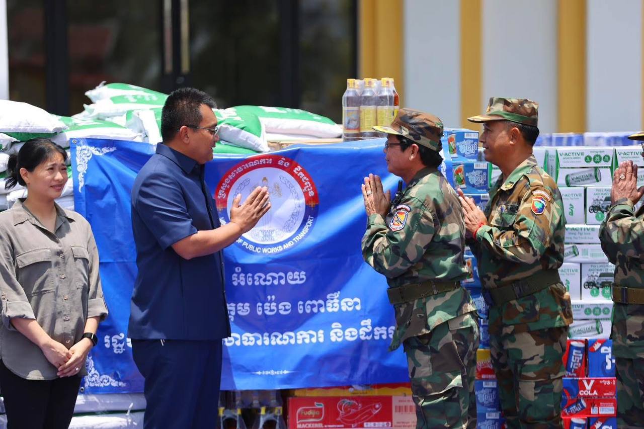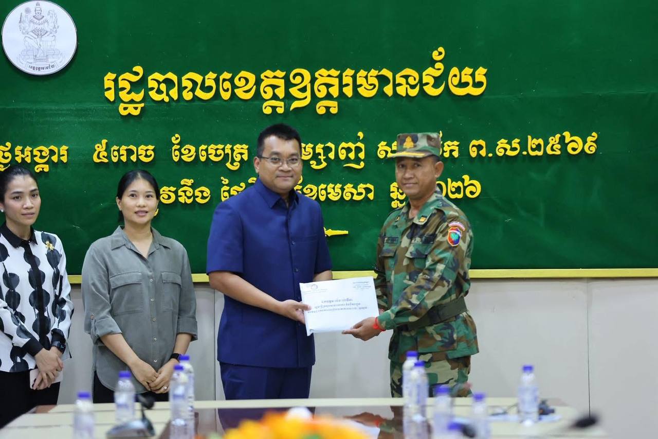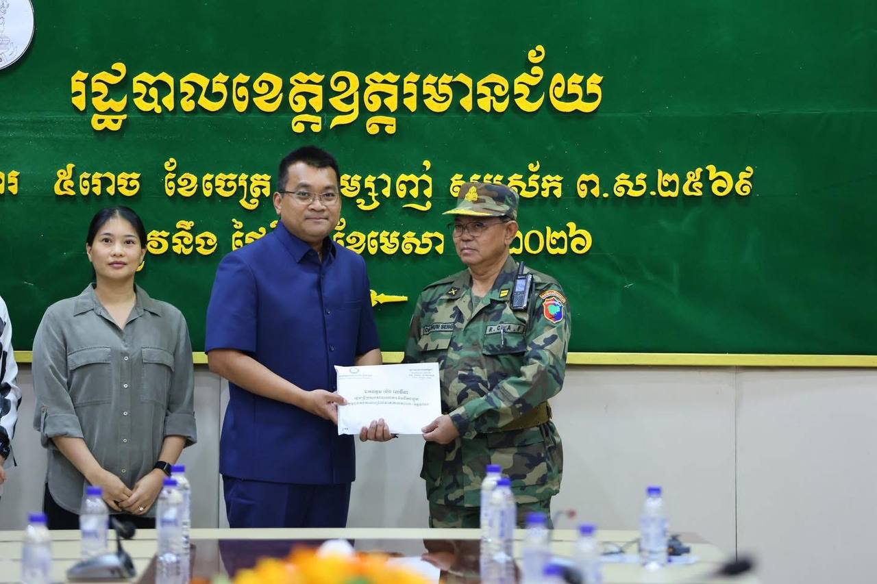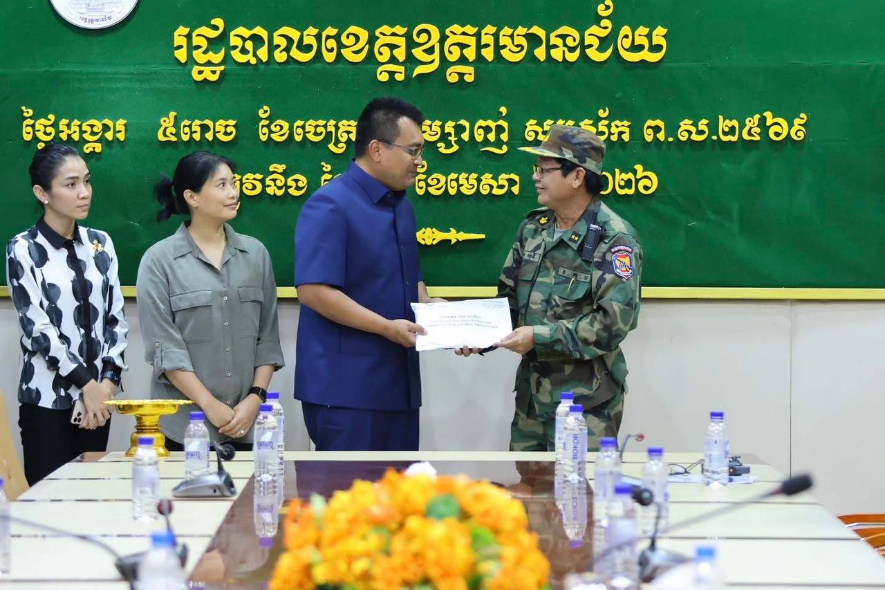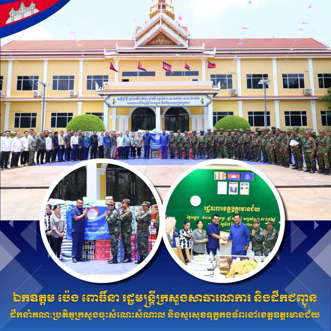 (ឧត្តរមានជ័យ)៖ លោក ប៉េង ពោធិ៍នា រដ្ឋមន្ត្រីក្រសួងសាធារណការ និងដឹកជញ្ជូន ព្រមទាំងលោកស្រី នាព្រឹកថ្ងៃទី៧ ខែមេសា ឆ្នាំ២០២៦នេះ អញ្ជើញដឹកនាំគណៈប្រតិភូក្រសួង ចុះសំណេះសំណាល សួរសុខទុក្ខ និងនាំយកអំណោយចែកជូនដល់វីរកងទ័ពជួរមុខ រួមមាន កងការពារព្រំដែនគោកលេខ៤០២ លេខ៤០៣ និងបញ្ជាការដ្ឋានកាំភ្លើងធំ អគ្គបញ្ជាការដ្ឋាន ដែលស្ថិតនៅក្នុងភូមិសាស្រ្តខេត្តឧត្តរមានជ័យ។