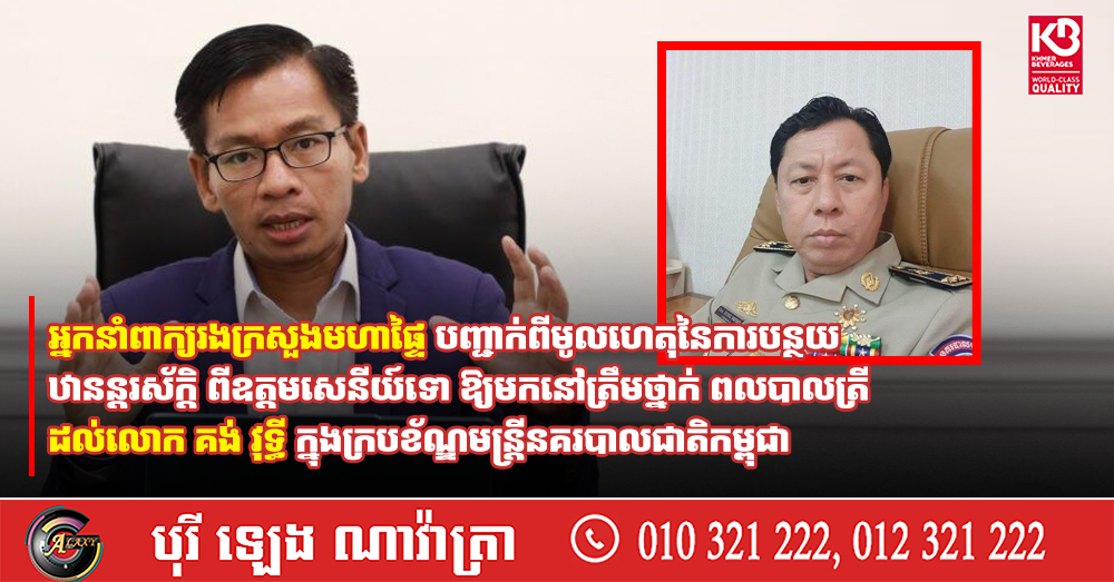 អ្នកនាំពាក្យរងក្រសួងមហាផ្ទៃ បញ្ជាក់ពីមូលហេតុនៃការបន្ថយឋានន្តរស័ក្តិ ពីឧត្តមសេនីយ៍ទោ ឱ្យមកនៅត្រឹមថ្នាក់ ពលបាលត្រី ដល់លោក គង់ វុទ្ធី ក្នុងក្របខ័ណ្ឌមន្ត្រីនគរបាលជាតិកម្ពុជា