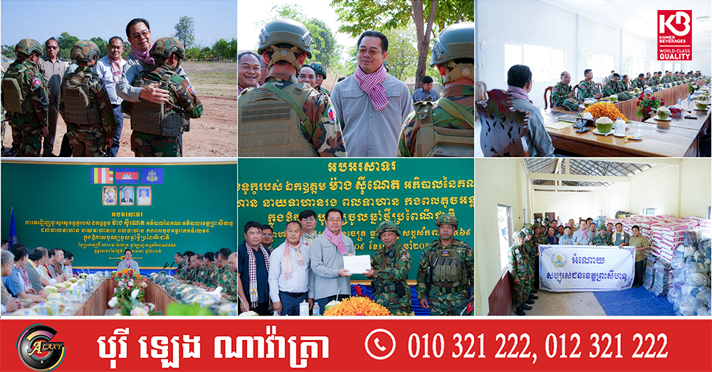 អភិបាលខេត្តព្រះសីហនុ នាំអំណោយទឹកចិត្តសប្បុរសជន ចែកជូនវីរកងទ័ពជួរមុខ កំពុងបំពេញភារកិច្ចការពារបូរណភាពទឹកដី នៅខេត្តឧត្តមានជ័យ