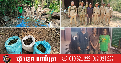 (ព្រះវិហារ)៖ ដោយមានការសម្របសម្រួលពីព្រះរាជ អាជ្ញានៃសាលាដំបូងខេត្តរតនគិរី ថ្ងៃទី១០ ខែមេសា ឆ្នាំ២០២៦ មន្រ្តីឧទ្យានុរក្ស នៃមន្ទីរបរិស្ថានខេត្តរតនគិរី សហការជាមួយគណៈកម្មការសហគមន៍តំបន់ការពារធម្មជាតិ អូរទុង និងមានការគាំទ្រពីគណៈបញ្ជាការឯកភាពរដ្ឋបាលស្រុកវើនសៃ បានធ្វើការចុះល្បាត ធ្វើការទប់ស្កាត់បទល្មើសធនធានធម្មជាតិ និងបានឃាត់ខ្លួនជនសង្ស័យចំនួន៣នាក់ ដែលបានធ្វើសកម្មភាពកាប់ដើម ប្រមូលផ្លែសំរ៉ងខ្ចី ដោយខុសច្បាប់ក្នុងសហគមន៍តំបន់ការពារធម្មជាតិអូរទុងនៃឧទ្យានជាតិវីរៈជ័យ ត្រង់ចំណុចអូរចាណោះផាច ភូមិត្រាក ឃុំកុកឡាក់ ស្រុកវើនសៃ ខេត្តរតនគិរី។