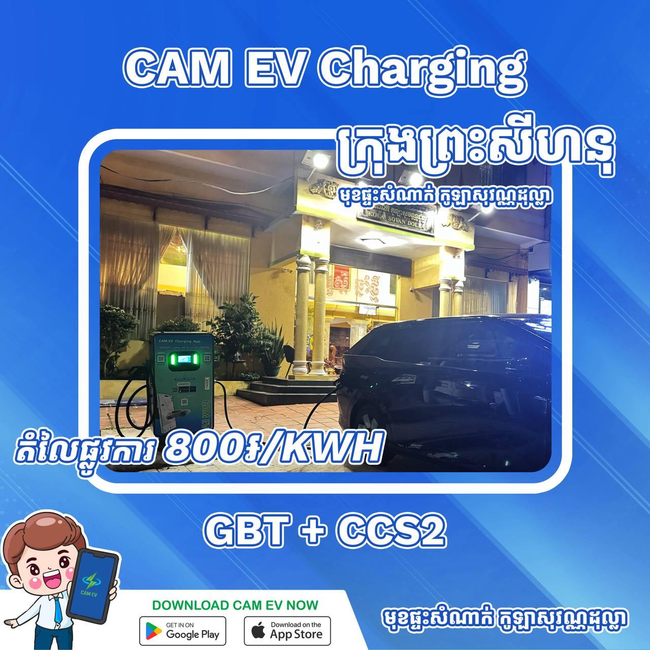 ទី៦៖ ស្ថានីយសាករថយន្ត EV ក្រុងព្រះសីហនុ (Fast Charge 60KW CCS2+GBT) (តំឡើងកំលាំងសាកឆាប់ៗនេះ) ត្រូវប្រើ App CAM EV។