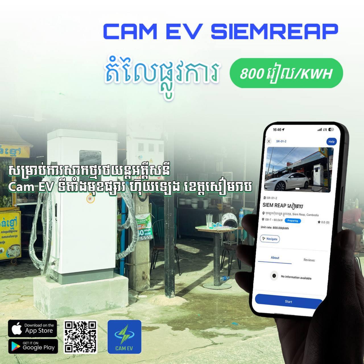 (ភ្នំពេញ)៖ ដំណឹងល្អសម្រាប់អ្នកប្រើប្រាស់រថយន្តអគ្គិសនីដែលធ្វើដំណើរទៅកាន់ខេត្តសៀមរាបបច្ចុប្បន្ន លោកអ្នកអាចធ្វើការសាកថ្មរថយន្តអគ្គិសនី (EV) នៅខេត្តសៀមរាបបានយ៉ាងងាយស្រួល និងចំណាយតិចជាមួយស្ថានីយសាកថ្ម CAM EV បានបន្តចេញប្រកាសបញ្ចុះតម្លៃសាកមកនៅត្រឹម 800៛/KWH ផ្តល់ការងាយស្រួលកាន់តែចំណេញខ្លាំងដល់អតិថិជនដែលប្រើប្រាស់ឡានអគ្គីសនីនៅកម្ពុជា ខណៈការបញ្ចុះតម្លៃនេះកើនដល់ ៧ទីតាំងហើយទូទាំងប្រទេស។