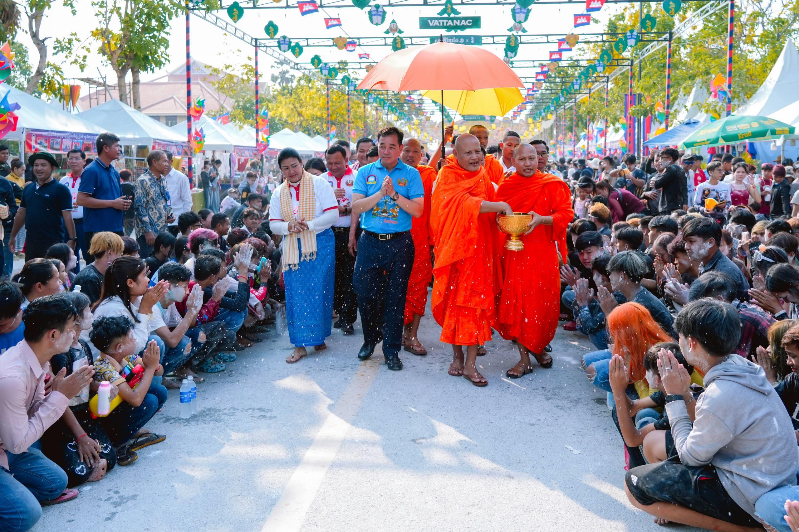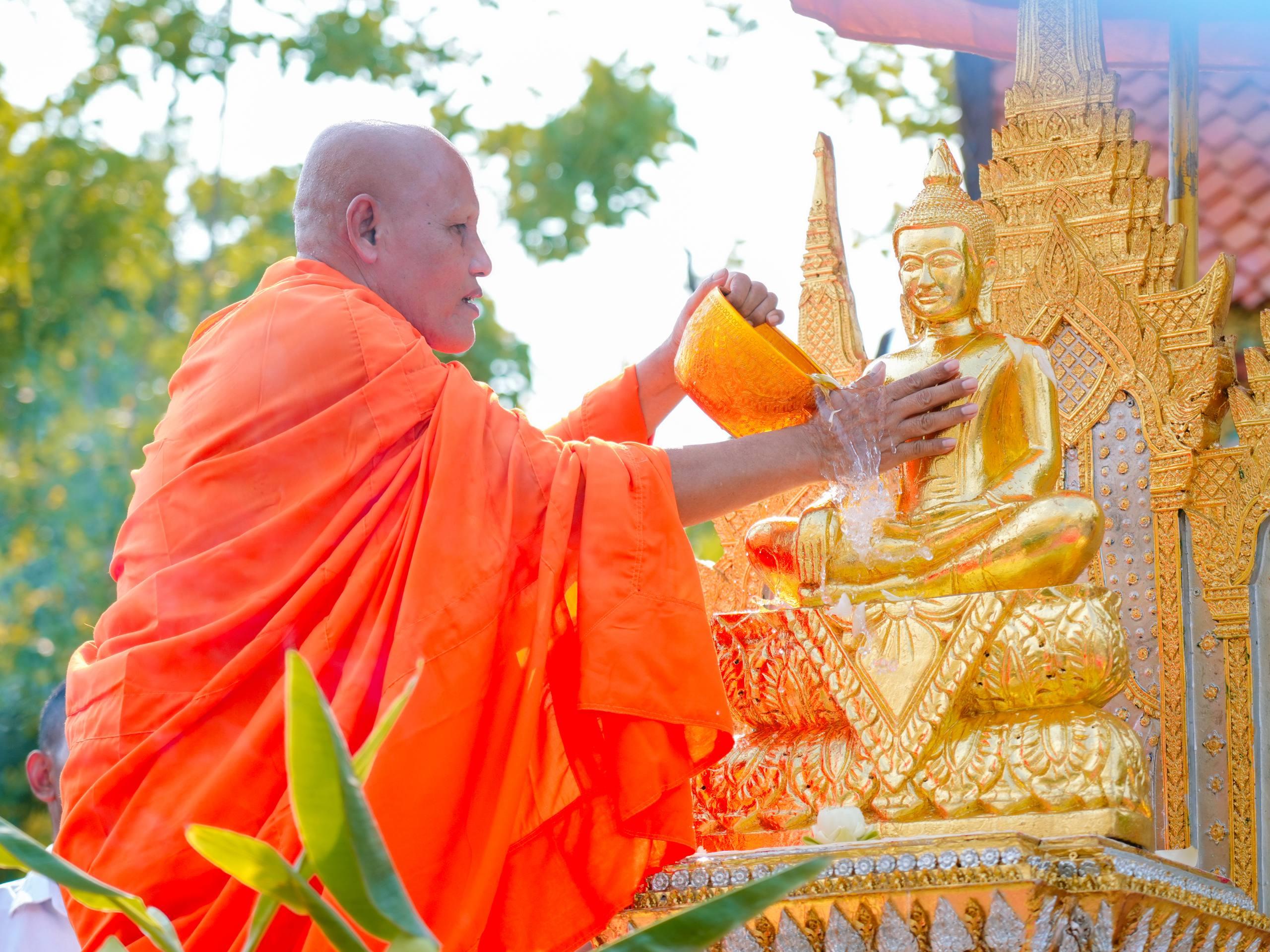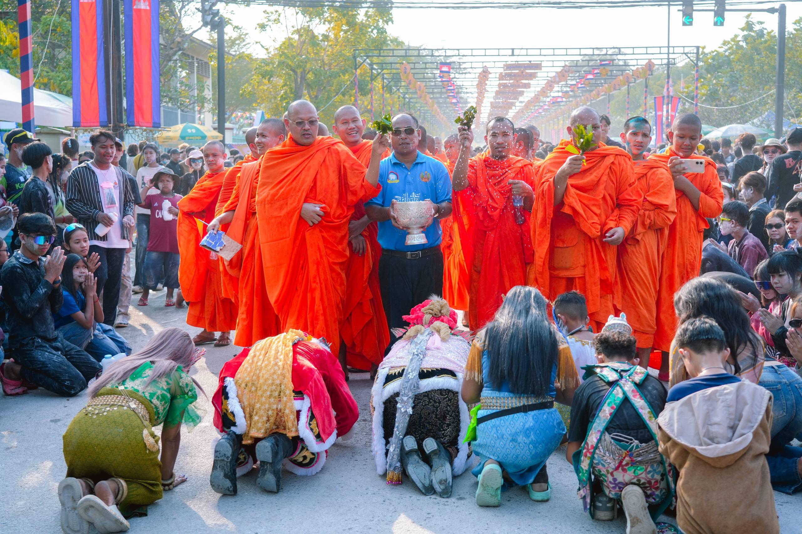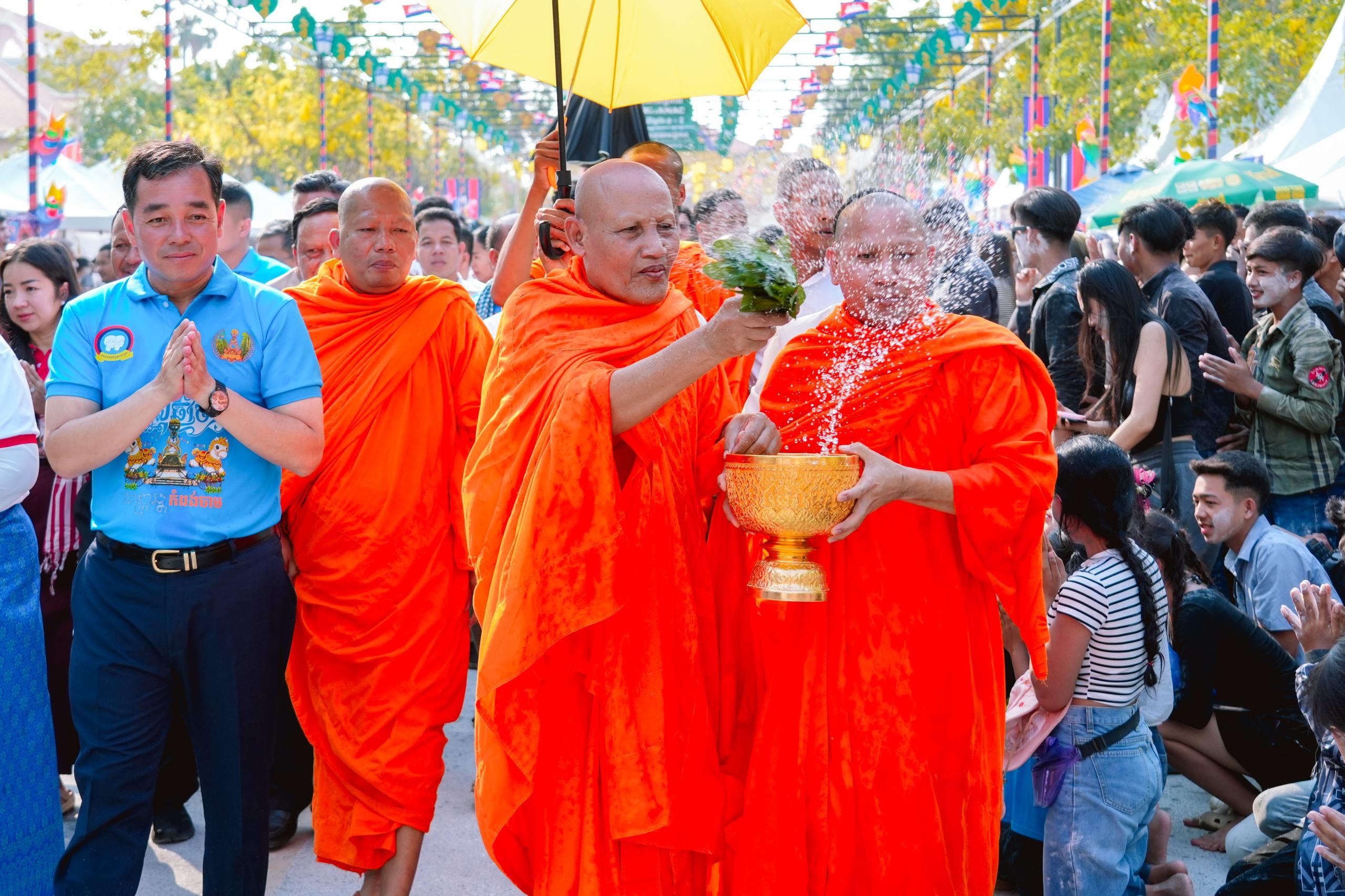 (កំពង់ចាម)៖ សម្តេចព្រះពោធិវ័ង្សកិត្តិបណ្ឌិត ណយ ច្រឹក រួមជាមួយរដ្ឋបាលខេត្តកំពង់ចាម បានយាងដឹកនាំព្រះសង្ឃ ១០៨ អង្គ ប្រោះព្រំព្រះពុទ្ធមន្តចម្រើនសិរី និងព្រះរាជទានយ័ន្ត ចំនួន ១០,០០០សន្លឹក ជូនដល់ប្រជាពលរដ្ឋ មកលេងកម្សាននាខេត្តកំពង់ចាមដែលមកចូលរួម ដើម្បីពង្រឹងសេចក្ដីសុខផ្នែកផ្លូវចិត្ត នារសៀលថ្ងៃទីបីនៃពិធីបុណ្យចូលឆ្នាំខ្មែរ គឺជាថ្ងៃឡើងស័ក ឬថ្ងៃឆ្លង ដែលគេប្រារព្ធពិធីស្រង់ទឹករូបបដិមាព្រះពុទ្ធ ប្រោះព្រុំសុំសេចក្តីសុខ ជូនវីរះកងទ័ពនិង ធ្វើបុណ្យឧទ្ទិសកុសលដល់យុទ្ធជនពលី នារដ្ឋបាលខេត្តកំពង់ចាម។