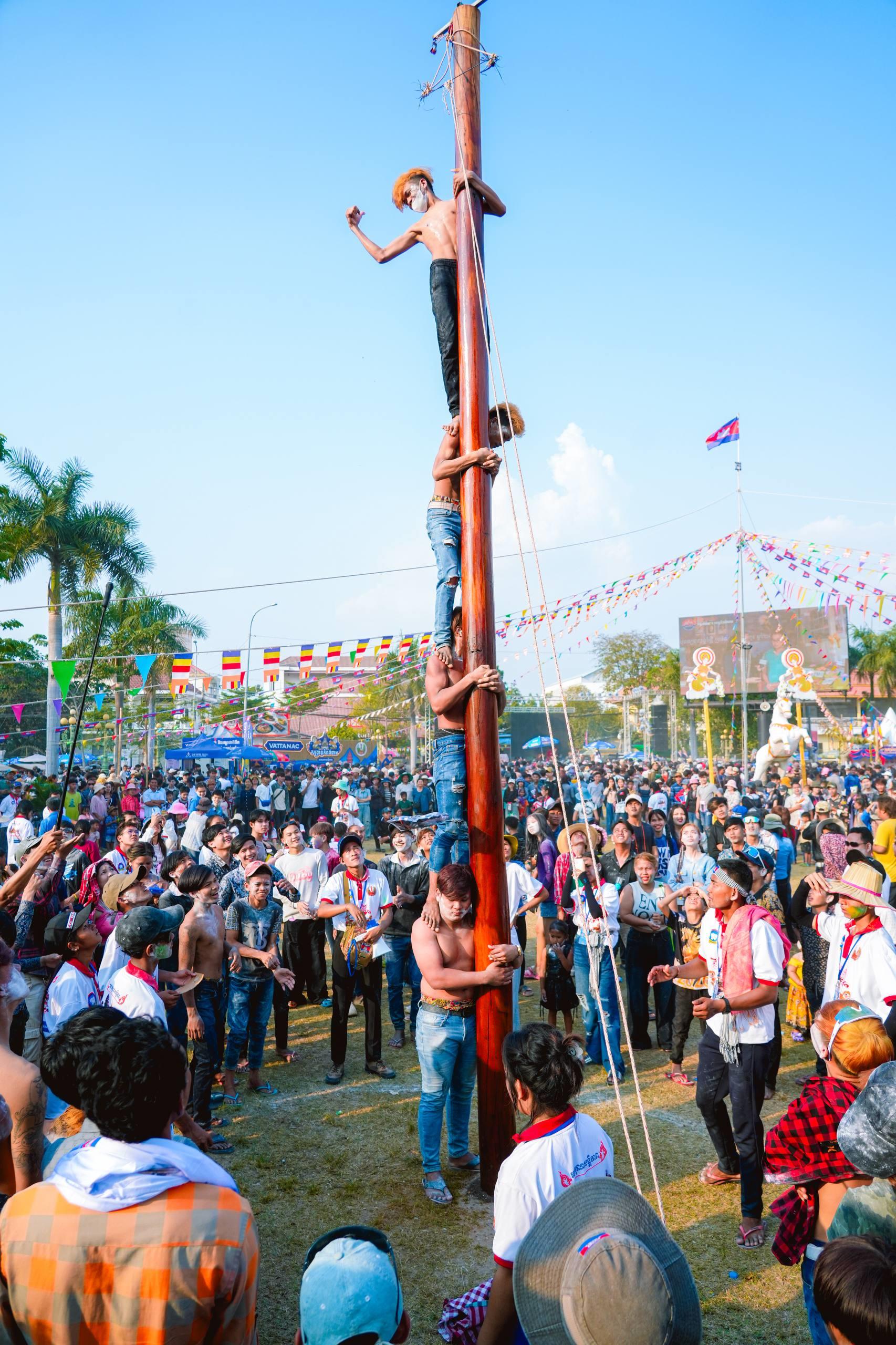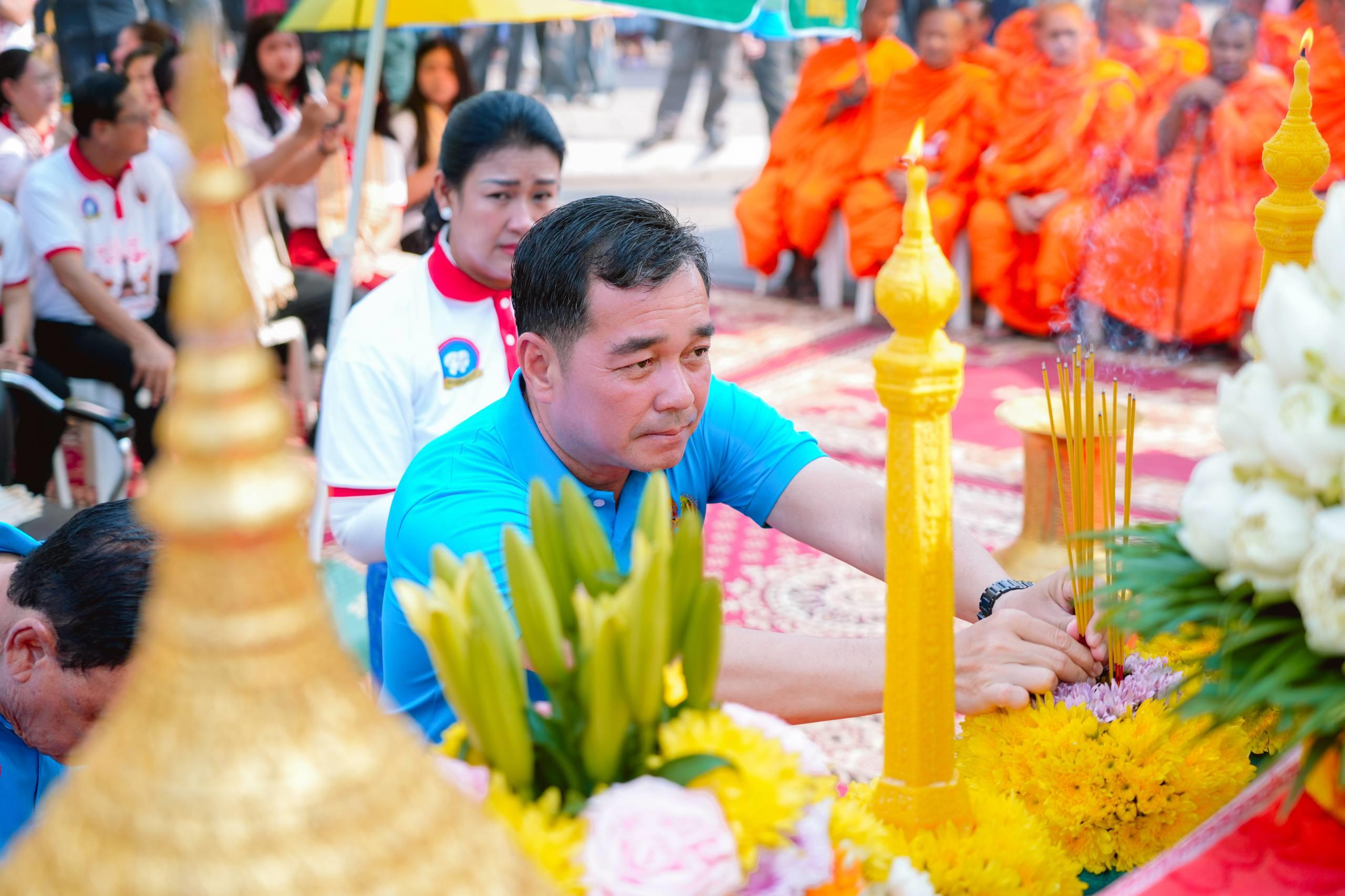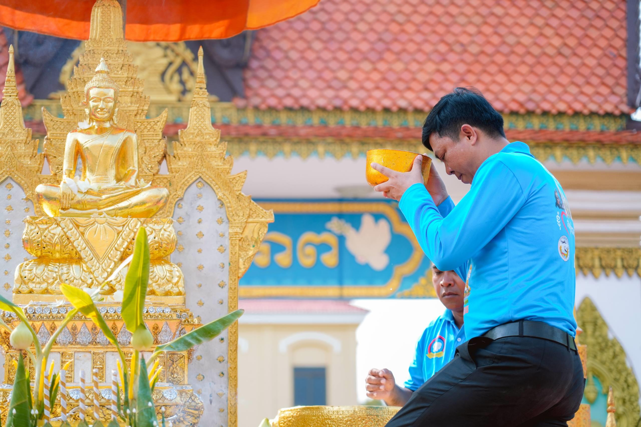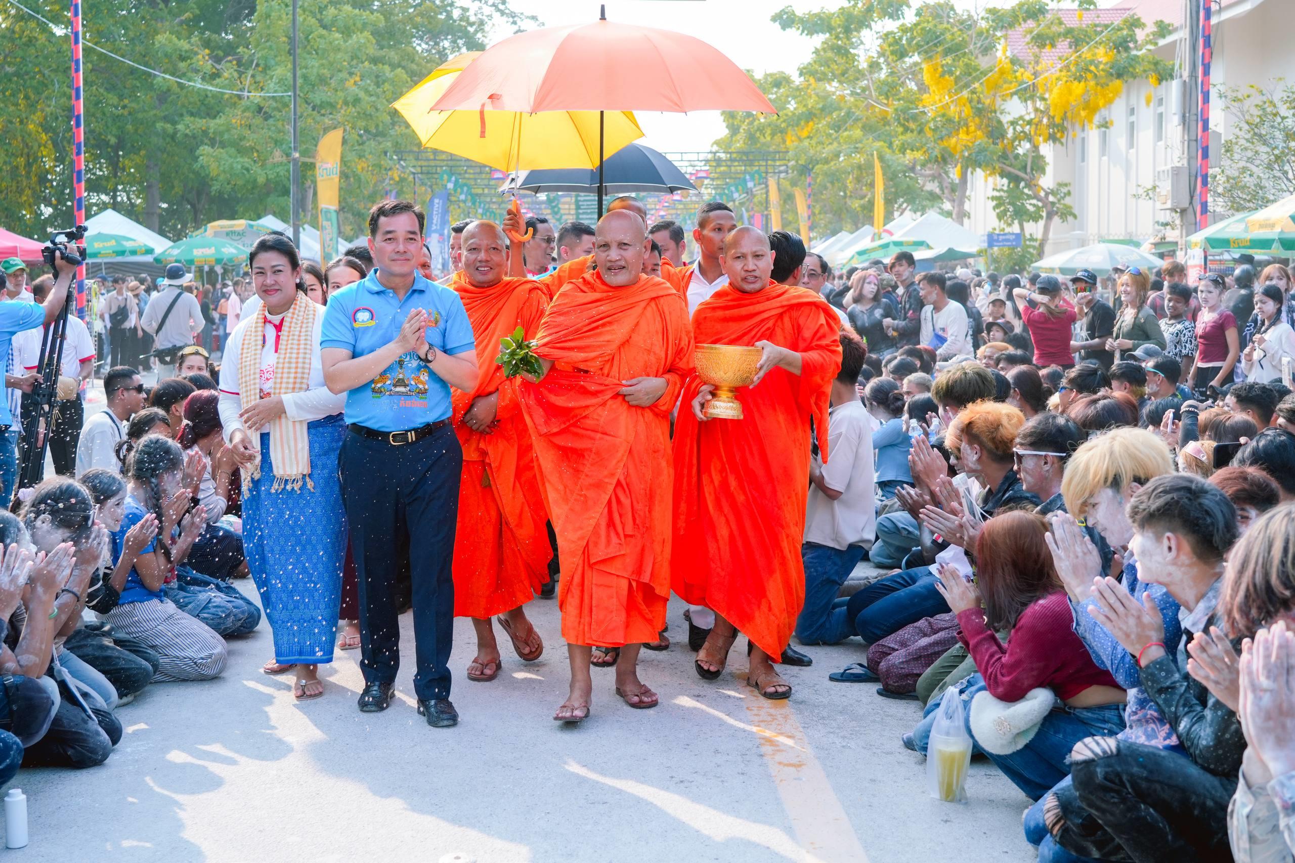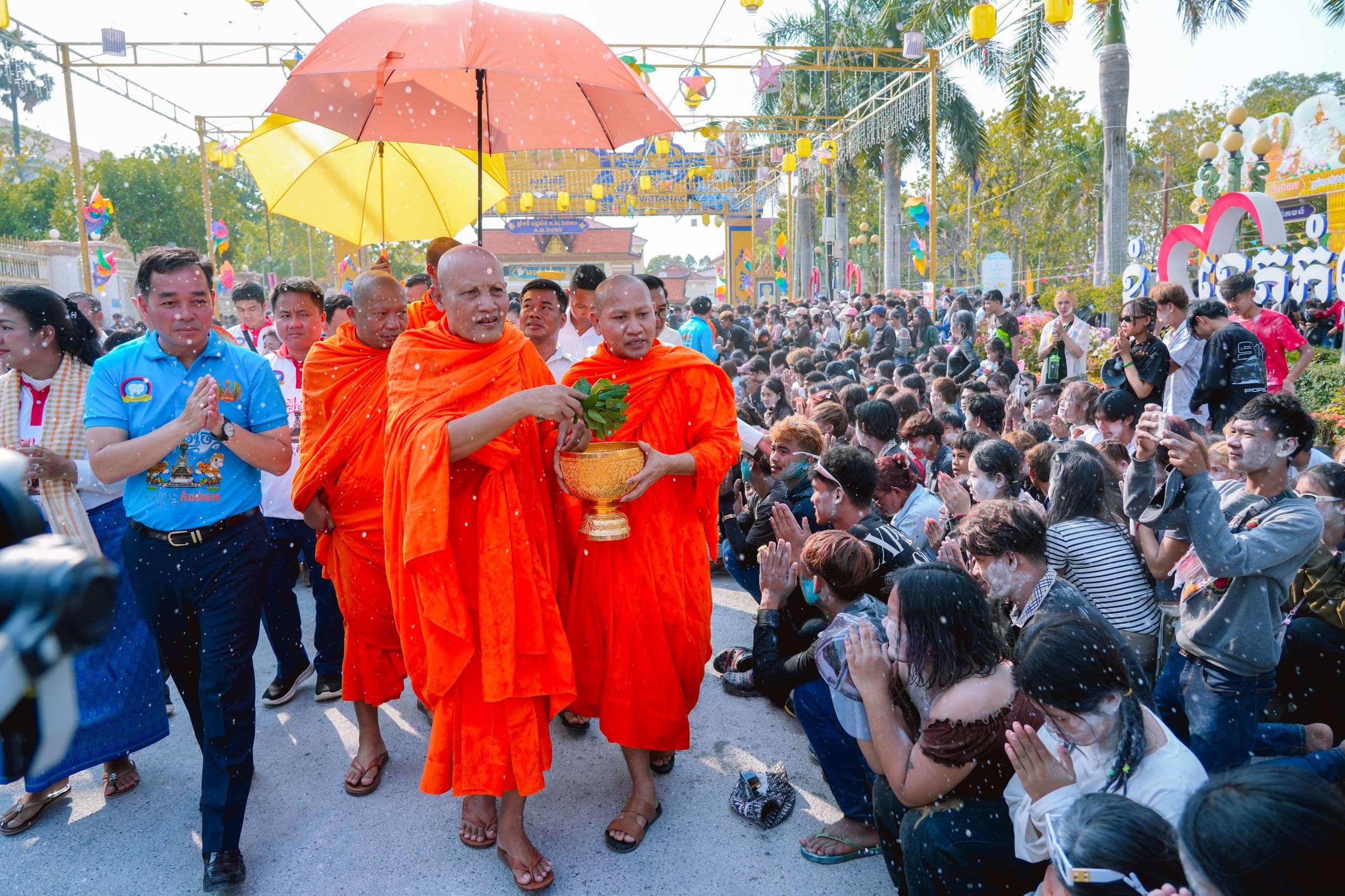 (កំពង់ចាម)៖ សម្តេចព្រះពោធិវ័ង្សកិត្តិបណ្ឌិត ណយ ច្រឹក រួមជាមួយរដ្ឋបាលខេត្តកំពង់ចាម បានយាងដឹកនាំព្រះសង្ឃ ១០៨ អង្គ ប្រោះព្រំព្រះពុទ្ធមន្តចម្រើនសិរី និងព្រះរាជទានយ័ន្ត ចំនួន ១០,០០០សន្លឹក ជូនដល់ប្រជាពលរដ្ឋ មកលេងកម្សាននាខេត្តកំពង់ចាមដែលមកចូលរួម ដើម្បីពង្រឹងសេចក្ដីសុខផ្នែកផ្លូវចិត្ត នារសៀលថ្ងៃទីបីនៃពិធីបុណ្យចូលឆ្នាំខ្មែរ គឺជាថ្ងៃឡើងស័ក ឬថ្ងៃឆ្លង ដែលគេប្រារព្ធពិធីស្រង់ទឹករូបបដិមាព្រះពុទ្ធ ប្រោះព្រុំសុំសេចក្តីសុខ ជូនវីរះកងទ័ពនិង ធ្វើបុណ្យឧទ្ទិសកុសលដល់យុទ្ធជនពលី នារដ្ឋបាលខេត្តកំពង់ចាម។