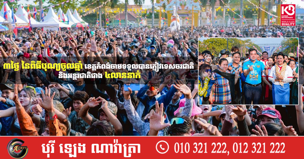 ៣ថ្ងៃ នៃពិធីបុណ្យចូលឆ្នាំ ខេត្តកំពង់ចាមទទួលបានភ្ញៀវទេសចរជាតិ និងអន្តរជាតិជាង ៤លាននាក់