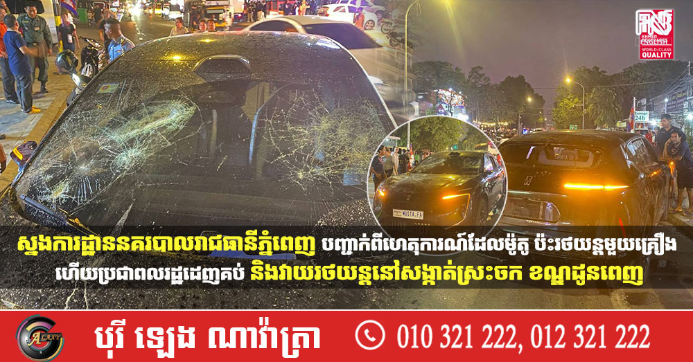 ស្នងការដ្ឋាននគរបាលរាជធានីភ្នំពេញ បញ្ជាក់ពីហេតុការណ៍ដែលម៉ូតូ ប៉ះរថយន្តមួយគ្រឿង ហើយប្រជាពលរដ្ឋដេញគប់ និងវាយរថយន្តនៅសង្កាត់ស្រះចក ខណ្ឌដូនពេញ