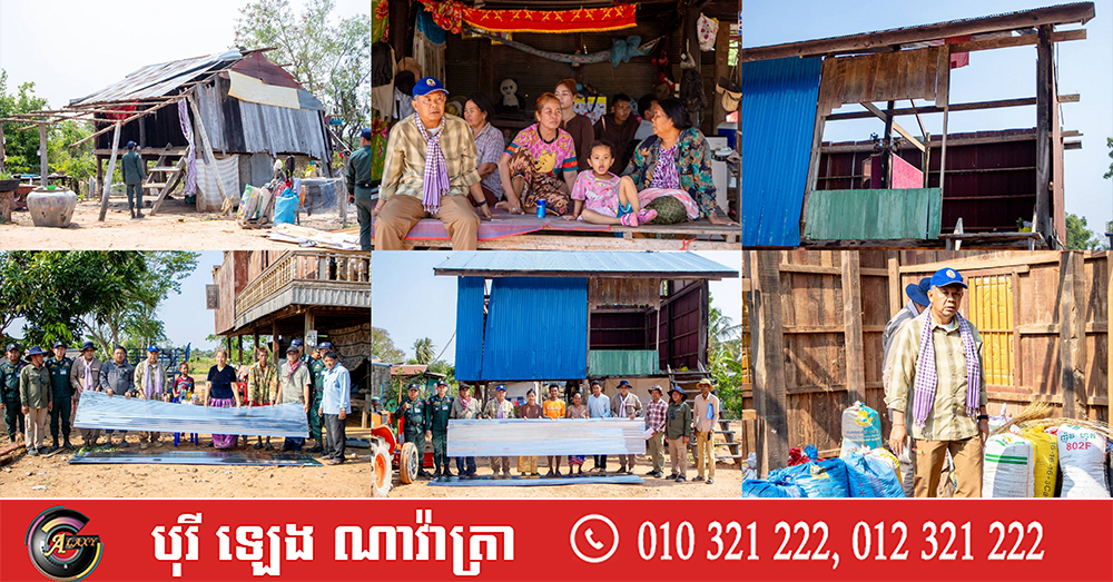 (បន្ទាយមានជ័យ)៖ នៅថ្ងៃទី១៦ ខែមេសា ឆ្នាំ២០២៦ លោក អ៊ុំ រាត្រី អភិបាលខេត្តបន្ទាយមានជ័យ និងជាប្រធានគណៈបញ្ជាការឯកភាពរដ្ឋបាលខេត្ត បានដឹកនាំកងកម្លាំងជួយរុះរើ និងរៀបចំជួសជុសផ្ទះ ព្រមទាំងនាំយកអំណោយស័ង្កសី ជាអំណោយរបស់សម្តេចមហាបវរធិបតី ហ៊ុន ម៉ាណែត នាយករដ្ឋមន្ត្រីនៃកម្ពុជា និងលោកជំទាវបណ្ឌិត ជូនប្រជាពលរដ្ឋដែលរងគ្រោះដោយសារខ្យល់កន្ត្រាក់ ចំនួន៩ភូមិ នៅក្នុងឃុំគោករមៀត ស្រុកថ្មពួក ខេត្តបន្ទាយមានជ័យ ប្រមាណជាង៤០០ខ្នងផ្ទះ កាលពីល្ងាចថ្ងៃទី១៥ ខែមេសា ឆ្នាំ២០២៦។
