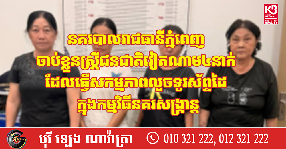 នគរបាលរាជធានីភ្នំពេញ ចាប់ខ្លួនស្ត្រីជនជាតិវៀតណាម៤នាក់ ដែលធ្វើសកម្មភាពលួចទូរស័ព្ទដៃ ក្នុងកម្មវិធីនគរសង្ក្រាន្ត