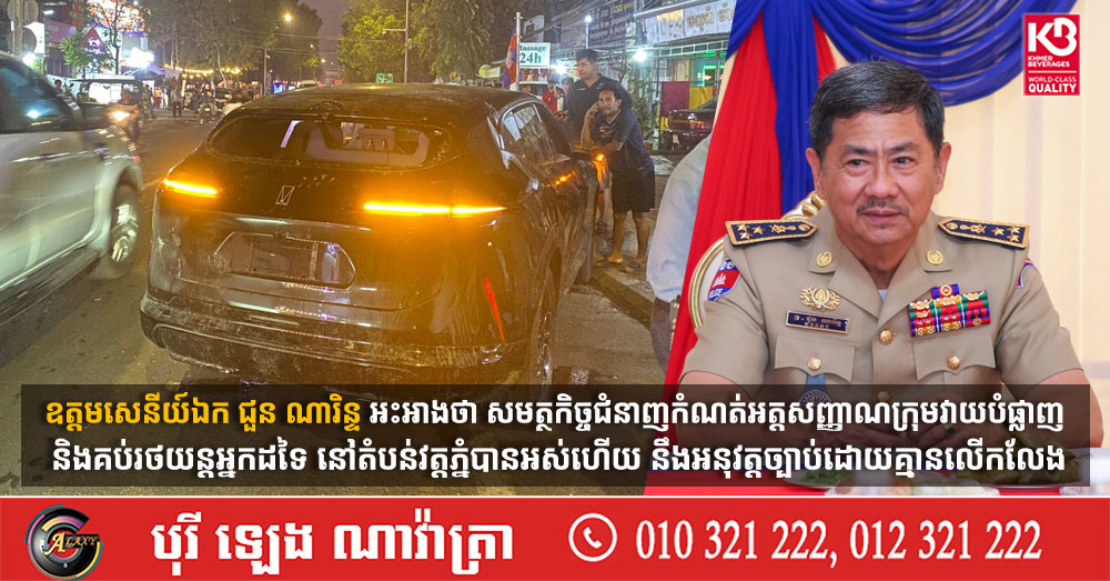 ឧត្តមសេនីយ៍ឯក ជួន ណារិន្ទ អះអាងថា សមត្ថកិច្ចជំនាញកំណត់អត្តសញ្ញាណក្រុមវាយបំផ្លាញ និងគប់រថយន្ដអ្នកដទៃ នៅតំបន់វត្តភ្នំបានអស់ហើយ នឹងអនុវត្តច្បាប់ដោយគ្មានលើកលែង