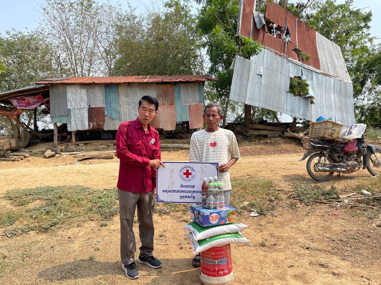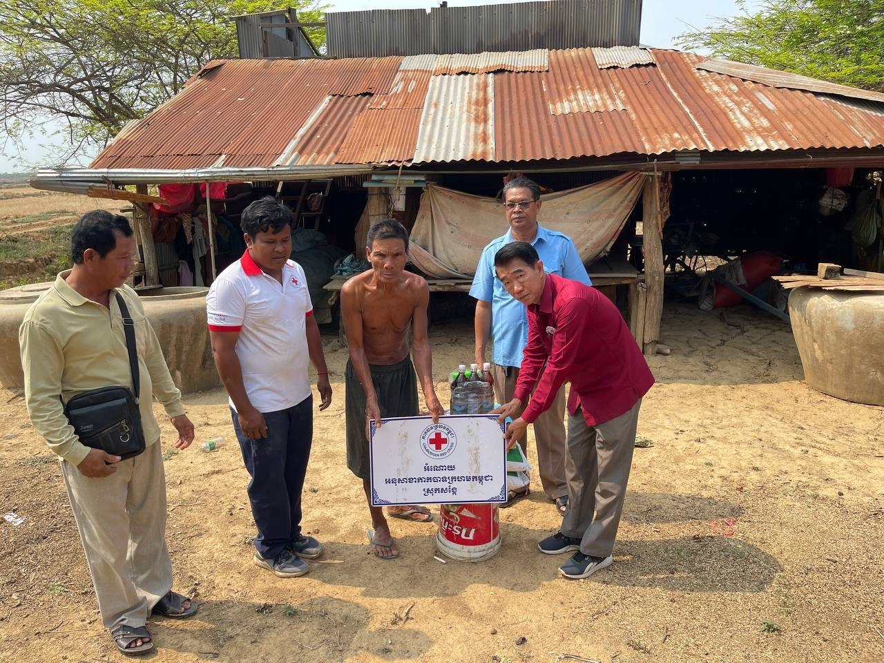 ពលរដ្ឋរងគ្រោះដោយខ្យល់កន្រ្តាក់ ចំនួន៩គ្រួសារ នៅឃុំអន្លង់វិល ទទួលបានអំណោយមនុស្សធម៌ពីអនុសាខាកាកបាទ ក្រហមកម្ពុជាស្រុកសង្កែ
