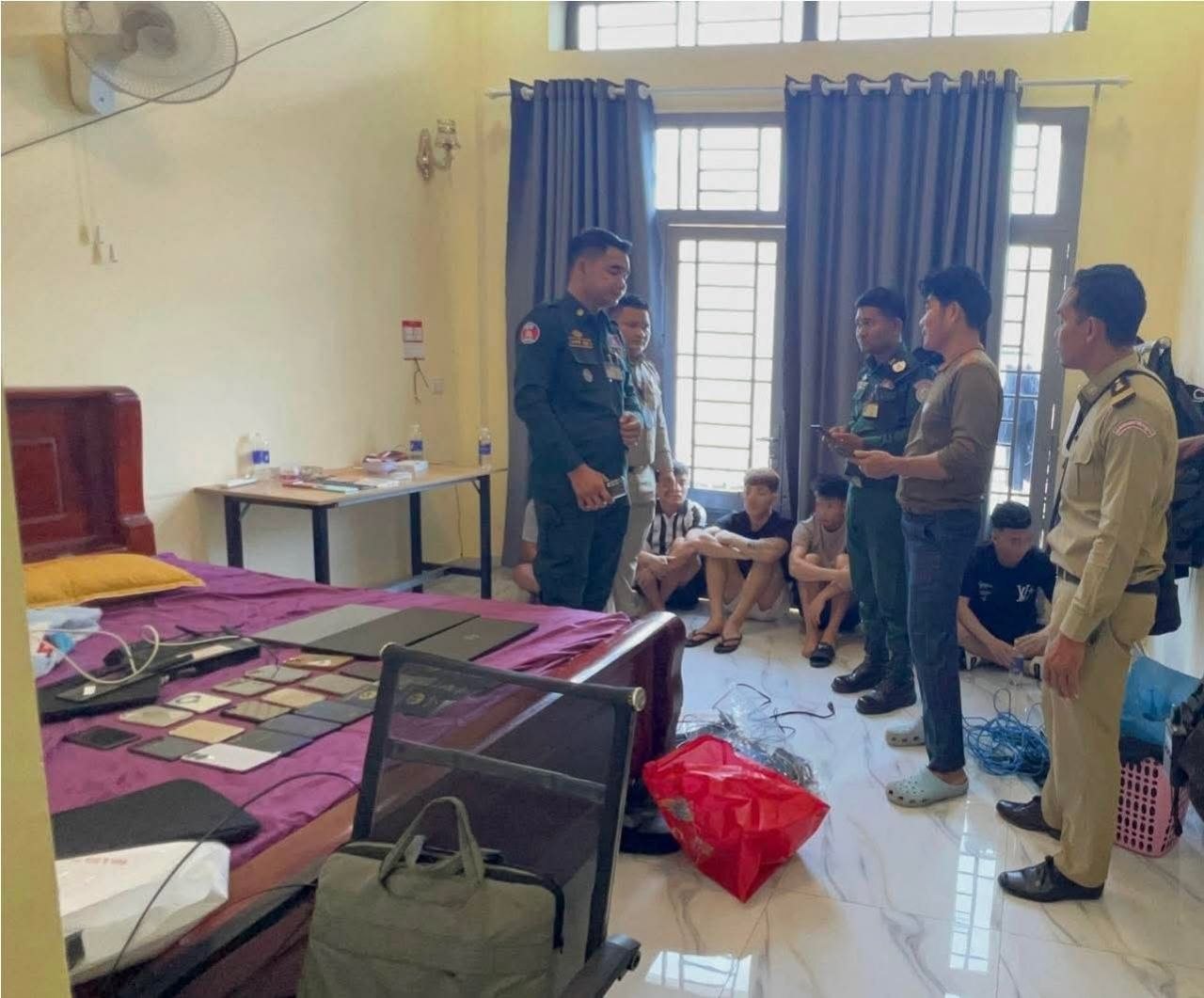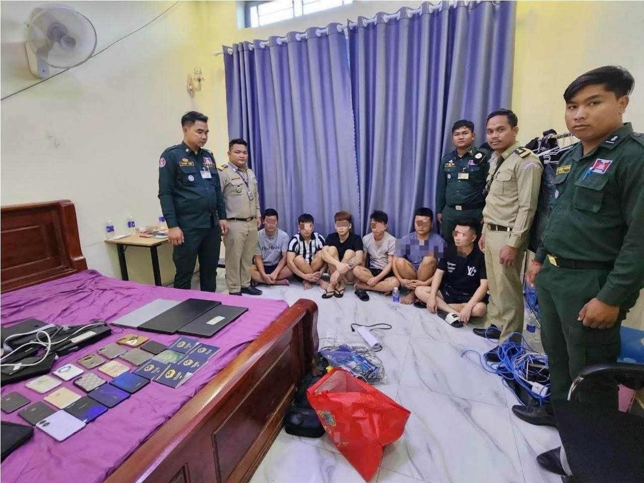 (ស្វាយរៀង)៖ កម្លាំងអធិការដ្ឋាននគរបាលស្រុកចន្ទ្រា ខេត្តស្វាយរៀង បានចុះឆែកឆេរទីតាំងសង្ស័យលួចលាក់ប្រព្រឹត្តបទល្មើស Online Scams ដោយឃាត់ខ្លួនជនសងង្ស័យ ៦នាក់ជាជនជាតិវៀតណាម។