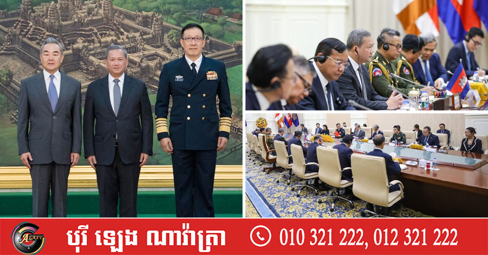 (ភ្នំពេញ)៖ ដាក់ជើងជាន់ដីកម្ពុជាភ្លាម លោក វ៉ាង យី រដ្ឋមន្ត្រីការបរទេសចិន និងលោក តុង ជុន រដ្ឋមន្ត្រីការពារជាតិ បានធ្វើដំណើរឆ្ពោះទៅកាន់វិមានរាជរដ្ឋាភិបាលកម្ពុជា ដើម្បីជួបសម្តែងការគួរសម និងពិភាក្សាការងារជាមួយសម្តេចមហាបវរធិបតី ហ៊ុន ម៉ាណែត នាយករដ្ឋមន្ត្រីកម្ពុជា។