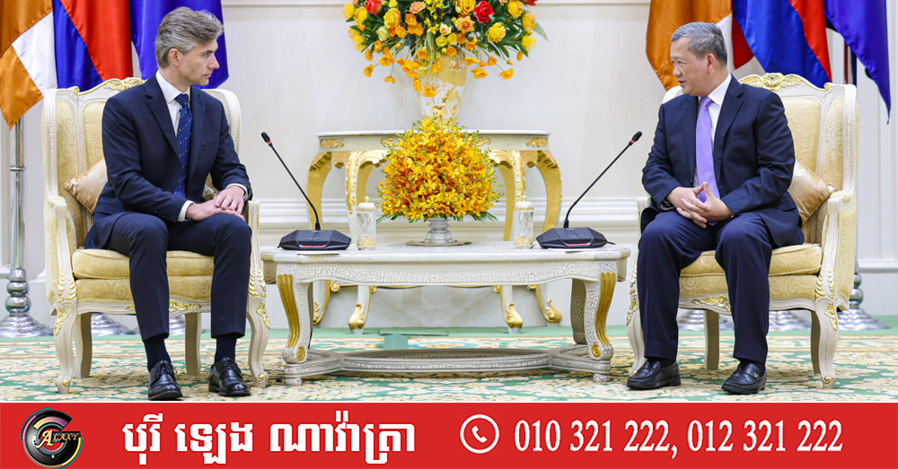 (ភ្នំពេញ)៖ នៅព្រឹកថ្ងៃសុក្រ ទី២៤ ខែមេសា ឆ្នាំ២០២៦នេះ សម្តេចមហាបវរធិបតី ហ៊ុន ម៉ាណែត នាយករដ្ឋមន្ត្រីកម្ពុជា បានអនុញ្ញាតឱ្យលោក Kestutis Budrys រដ្ឋមន្ត្រីក្រសួងការបរទេស នៃសាធារណរដ្ឋលីទុយអានី ជួបសម្តែងការគួរសម និងពិភាក្សាការងារ នៅវិមានសន្តិភាព។