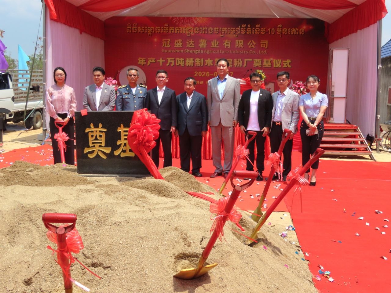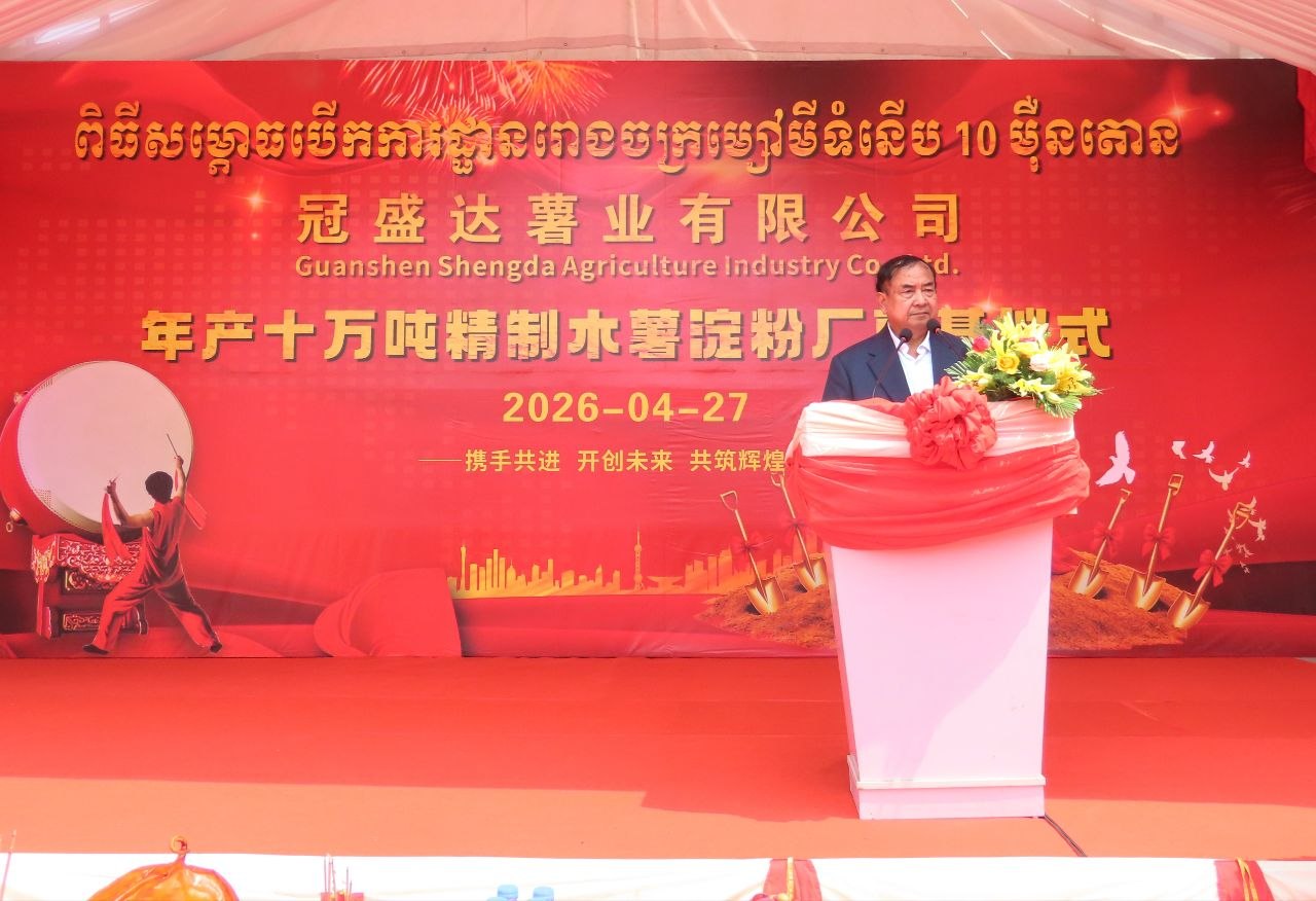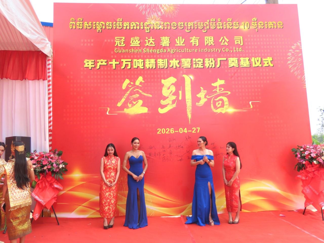 ក្នុងនាមតំណាងឲ្យបុគ្គលិកគ្រប់ជាន់ថ្នាក់ នៃគម្រោង សូមសម្តែងនូវការស្វាគមន៍យ៉ាងកក់ក្តៅ និងការថ្លែងអំណរគុណយ៉ាងជ្រាលជ្រៅចំពោះភ្ញៀវកិត្តិយសទាំងអស់ សម្រាប់ការផ្តល់កិត្តិយសចូលរួមជាសេក្ខីភាព ក្នុងពិធីបញ្ចុះបឋមសិលា នៃគម្រោងរោងចក្រផលិត ម្សៅដំឡូងមីដែលមានលទ្ធភាពផលិតម្សៅ រហូតទៅដល់១០ម៉ឺនតោនក្នុងមួយឆ្នាំ របស់ក្រុម «Guanshen Shengda Agriculture Industry Co., Ltd.»។