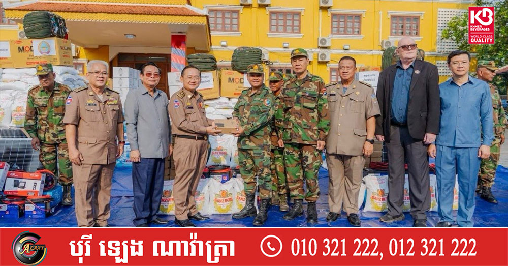 (បាត់ដំបង)៖ លោក អ៊ុយ រី ប្រធានក្រុមប្រឹក្សាខេត្ត និងលោក សុខ លូ អភិបាលខេត្តបាត់ដំបង បាននាំយកអំណោយជាថវិកា គ្រឿងឧបភោគបរិភោគ និងសម្ភារប្រើប្រាស់នានា ឧបត្ថម្ភគាំទ្រដល់កងកម្លាំងជួរមុខ ដែលកំពុងឈរជើងការពារបូរណភាពទឹកដី នៅតាមខ្សែបន្ទាត់ព្រំដែនកម្ពុជា-ថៃ ក្នុងភូមិសាស្រ្ត ខេត្តបាត់ដំបង។