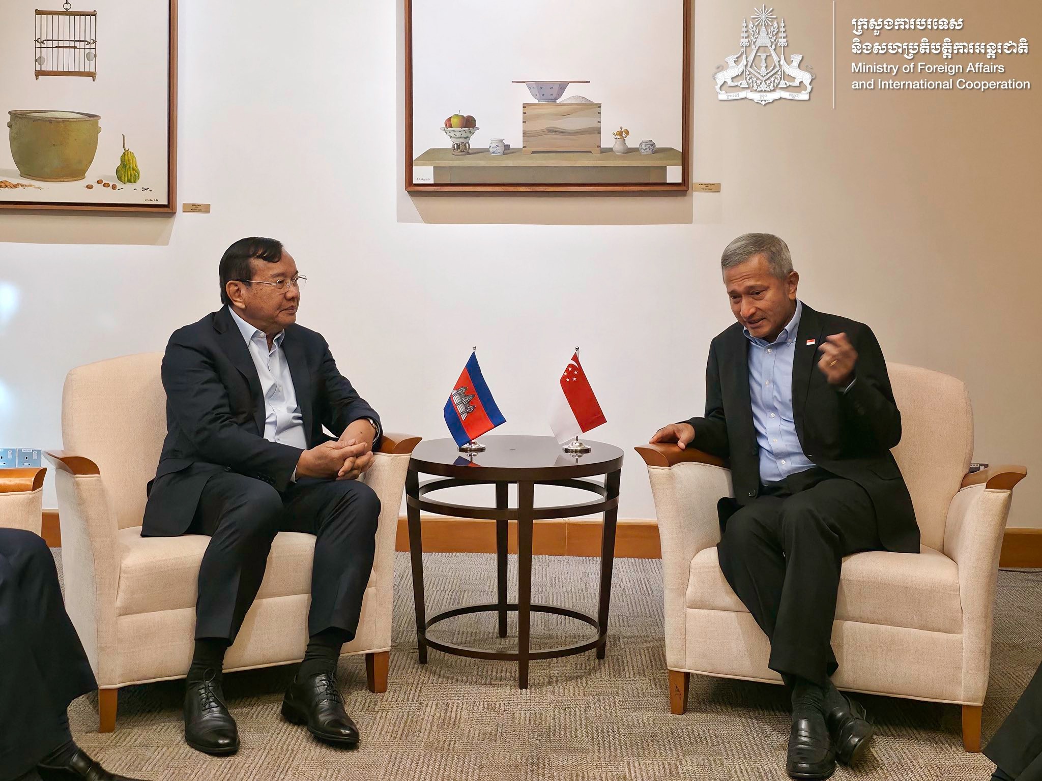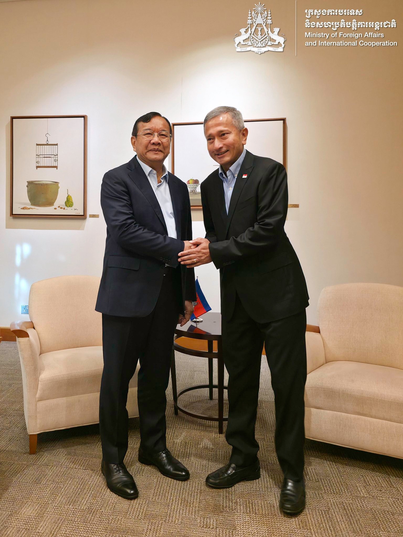 (ភ្នំពេញ)៖ នៅថ្ងៃទី២៧ ខែមេសា ឆ្នាំ២០២៦ ឧបនាយករដ្ឋមន្ត្រី ប្រាក់ សុខុន រដ្ឋមន្ត្រីការបរទេស និងសហប្រតិបត្តិការអន្តរជាតិ បានជួបពិភាក្សាការងារជាមួយ លោកបណ្ឌិត វីវៀន បាឡាគ្រីស្សណាន់ រដ្ឋមន្ត្រីការបរទេសសិង្ហបុរី។