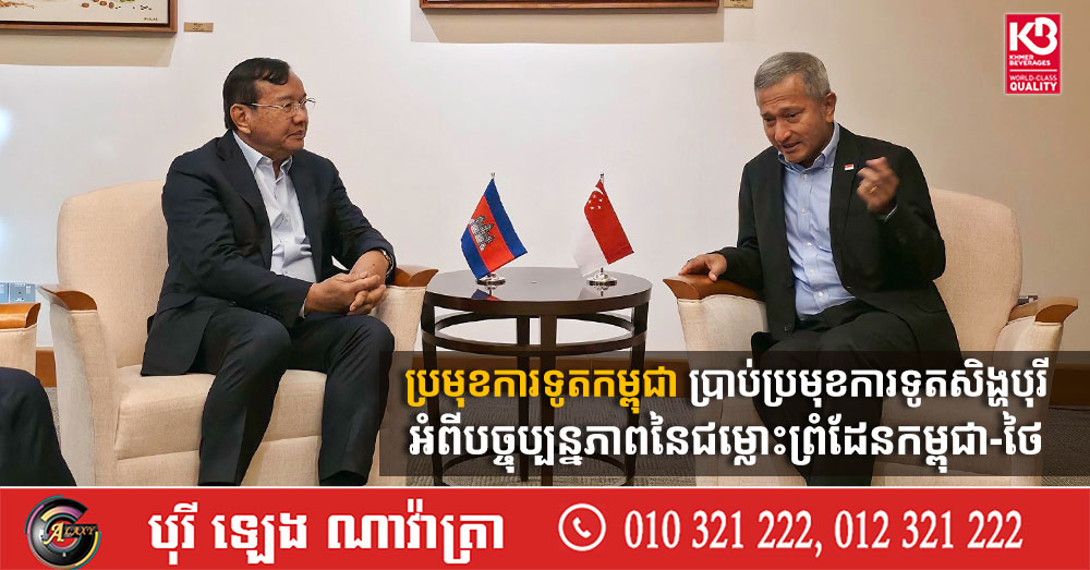 ប្រមុខការទូតកម្ពុជា ប្រាប់ប្រមុខការទូតសិង្ហបុរី អំពីបច្ចុប្បន្នភាពនៃជម្លោះព្រំដែនកម្ពុជា-ថៃ