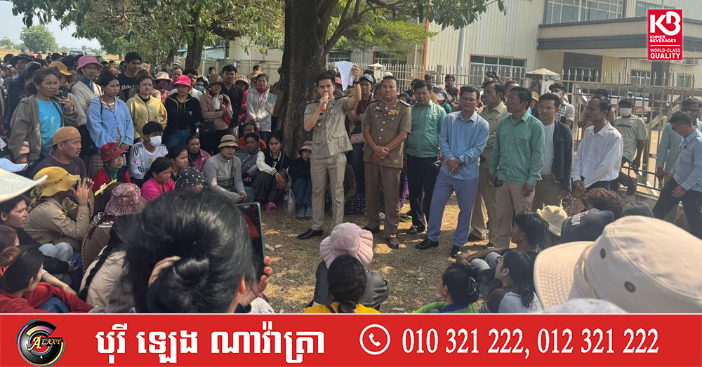 (ភ្នំពេញ)៖ នៅថ្ងៃទី២៧ ខែមេសា ឆ្នាំ២០២៦ មន្ត្រីនៃក្រសួងការងារ និងបណ្តុះបណ្តាលវិជ្ជាជីវៈ ទាំងថ្នាក់ក្រសួង និងថ្នាក់មន្ទីរ បានចុះអន្តរាគមន៍ដោះស្រាយភ្លាមៗ ករណីក្រុមហ៊ុន អឹមអិល អ៊ិនធីមេត អឹភែរឹល (ខេមបូឌា) ស្ថិតក្នុងតំបន់សេដ្ឋកិច្ចពិសេស អូរនាង ក្រុងប៉ោយប៉ែត ខេត្ដបន្ទាយមានជ័យ ដែលបានប្រកាសបិទដំណើរការផលិតកម្មទាំងមូល។ នេះបើតាមការបញ្ជាក់ លោក ស៊ុន មេសា អ្នកនាំពាក្យនៃក្រសួងការងារ និងបណ្តុះបណ្តាលវិជ្ជាជីវៈ។