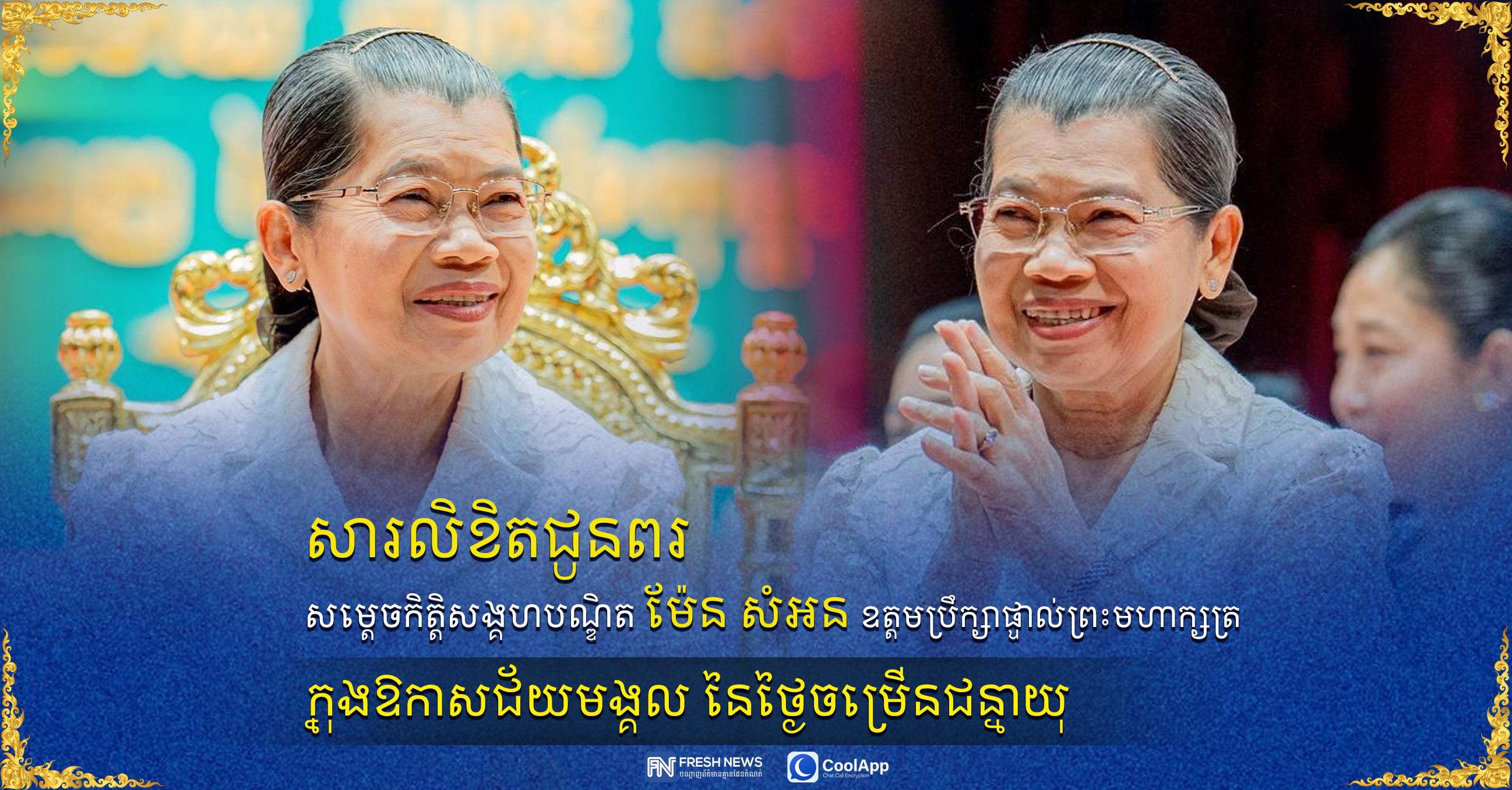 នាឱកាសដ៏ប្រសើរថ្លៃថ្លានេះ យើងខ្ញុំសូមបួងសួងដល់គុណបុណ្យព្រះរតនត្រ័យ កែវទាំងបី វត្ថុស័ក្តិសិទ្ធិ ទាំងឡាយក្នុងលោក ទេវតាថែរក្សាទឹកដីនៃព្រះរាជាណាចក្រកម្ពុជា សូមព្រះអង្គតាមជួយបីបាច់ថែរក្សាប្រទាន ពរជ័យ សិរីសួស្តី ជ័យមង្គលគ្រប់ប្រការជូនដល់ សម្ដេចកិត្តិសង្គហបណ្ឌិត ព្រមទាំងបុត្រាបុត្រី ចៅប្រុស ចៅស្រី សូមសមប្រកបដោយព្រះពុទ្ធពរទាំងបួនប្រការគឺ អាយុ វណ្ណៈ សុខៈ ពលៈ កុំបីឃ្លៀងឃ្លាតឡើយ៕