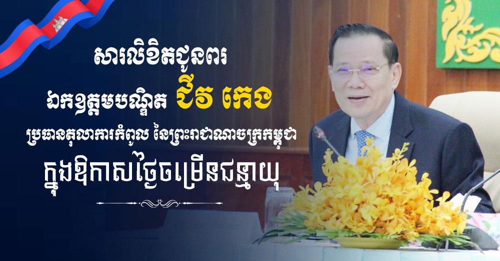 (ភ្នំពេញ)៖ ឯកឧត្តម ទេសរដ្ឋមន្រ្តី ឆៃ ស៊ីណារិទ្ធ ទទួលបន្ទុកបេសកកម្មពិសេស បានផ្ញើសារលិខិតជូនពរ ឯកឧត្តមបណ្ឌិត ជីវ កេង ប្រធានតុលាការកំពូល នៃព្រះរាជាណាចក្រកម្ពុជា ក្នុងឱកាសដ៏បវរសួស្តី សិរីមង្គលមហាប្រសើរ នៃពិធីចម្រើនជន្មាយុ ដែលប្រព្រឹត្តទៅនៅថ្ងៃសៅរ៍ ១០កើត ខែចេត្រ ឆ្នាំម្សាញ់ សប្តស័ក ពុទ្ធសករាជ ២៥៦៩ ត្រូវនឹងថ្ងៃទី២៨ ខែមីនា ឆ្នាំ២០២៦។