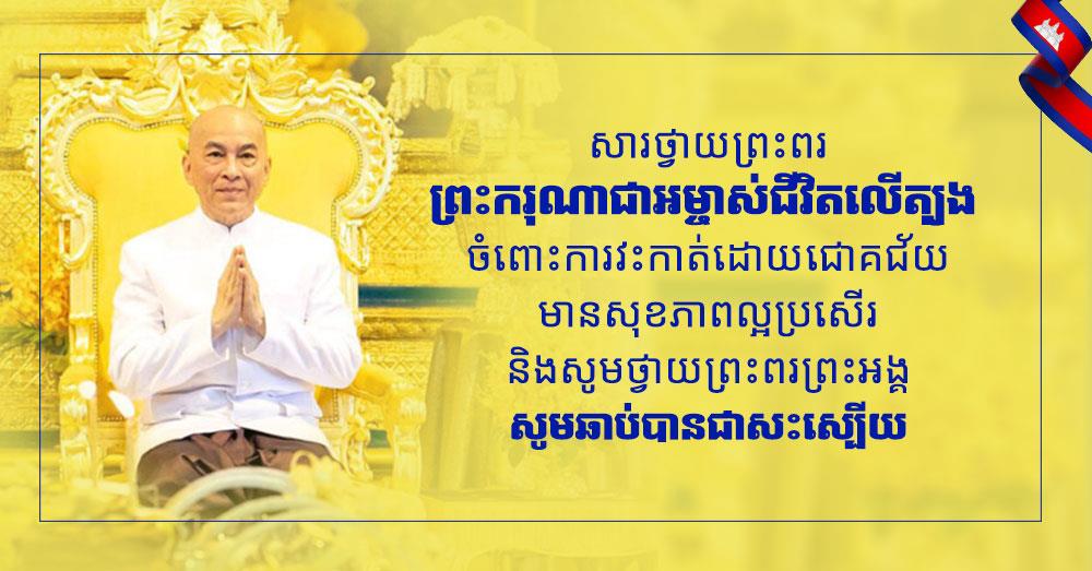 សូម ព្រះករុណាជាអម្ចាស់ជីវិតលើត្បូង ជាទីគោរពសក្ការៈដ៏ខ្ពង់ខ្ពស់បំផុត ទ្រង់ព្រះមេត្តាប្រោសទទួលនូវគារវកិច្ចដ៏ស្មោះស្ម័គ្រ និងខ្ពង់ខ្ពស់បំផុតស្មើជីវិតពី ទូលព្រះបង្គំយើងខ្ញុំទាំងអស់គ្នា៕